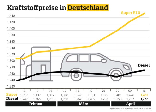 München (ots) Die Preise an den Tankstellen bewegen sich in der Karwoche weiter nach oben, Benzin kostet derzeit so viel wie zuletzt Anfang Dezember. Laut aktueller Auswertung des ADAC müssen Autofahrer für einen Liter Super E10 im Bundesmittel 1,451 Euro bezahlen, 2,5 Cent mehr als in der Vorwoche. Diesel verteuerte sich um 1,0 Cent auf…