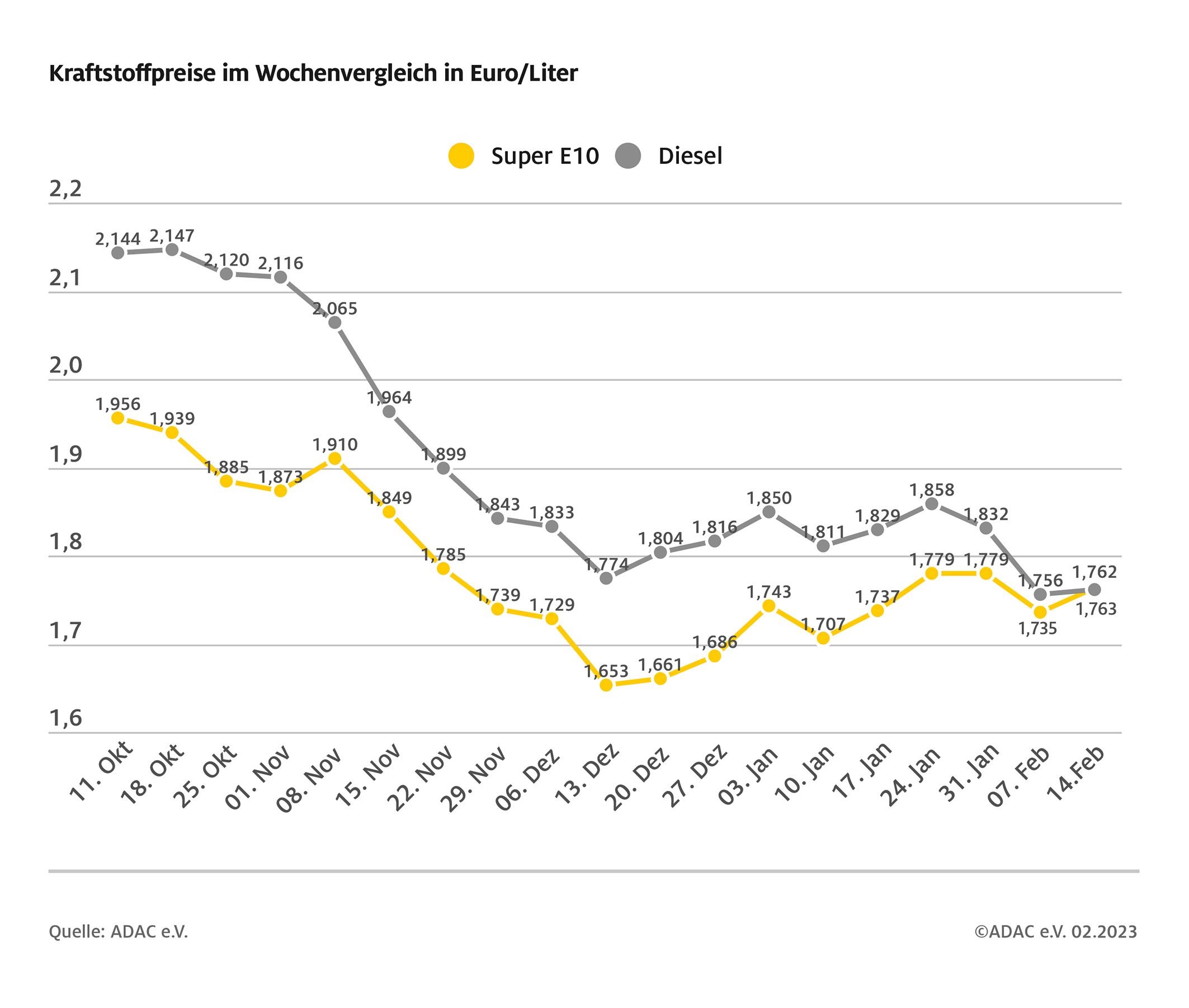 München (ots) – Erstmals seit achteinhalb Monaten ist Diesel-Kraftstoff wieder günstiger als Super E10. Wie die aktuelle ADAC Auswertung der Kraftstoffpreise in Deutschland ergibt, kostet ein Liter Super 10 im bundesweiten Mittel 1,763 Euro, der Preis für einen Liter Diesel liegt bei 1,762 Euro. Zuletzt war Diesel am 31. Mai 2022 günstiger als Super E10. Seit Beginn des Tankrabatts am 1. Juni mussten Dieselfahrer beim Tanken regelmäßig mehr bezahlen als die Fahrer von Benzinern. Die Steuer auf Diesel wurde während des dreimonatigen Rabatts um rund 17 Cent je Liter gesenkt, bei Benzin betrug der Steuernachlass 35 Cent. Doch auch nach dem Ende des Tankrabatts am 31. August 2022 blieb Diesel aufgrund von Sondereffekten teurer als Super E10.