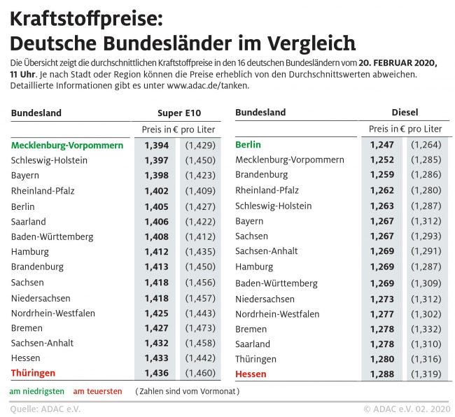 München (ots) Autofahrer in Norddeutschland sparen beim Tanken derzeit am meisten. Im aktuellen Bundesländervergleich ist Super E10 in Mecklenburg-Vorpommern mit durchschnittlich 1,394 Euro je Liter am preiswertesten. In Thüringen, dem teuersten Bundesland, muss man hingegen im Durchschnitt 1,436 Euro je Liter bezahlen. Das entspricht einer mittleren Preisdifferenz von immerhin 4,2 Cent je Liter. Diesel ist in…