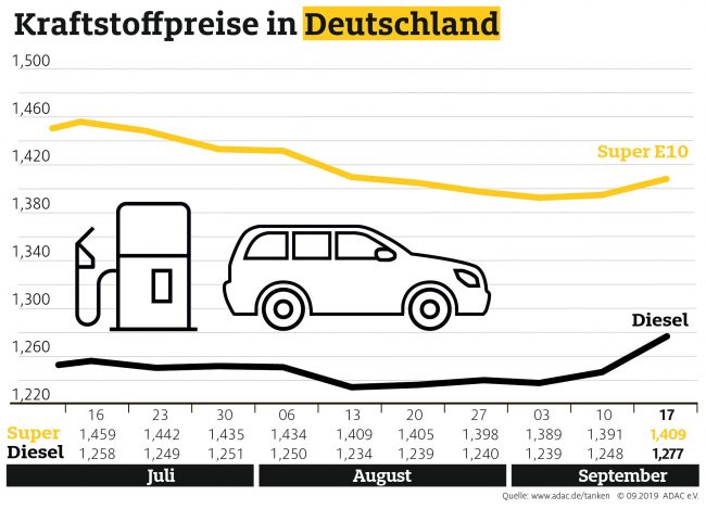 München (ots) Tanken in Deutschland ist wieder spürbar teurer. Laut aktueller Auswertung des ADAC müssen Autofahrer für einen Liter Super E10 derzeit durchschnittlich 1,409 Euro bezahlen, das sind 1,8 Cent mehr als in der Vorwoche. Diesel verteuerte sich im Bundesmittel noch deutlicher auf 1,277 Euro je Liter, ein Anstieg von 2,9 Cent. Grund für die…