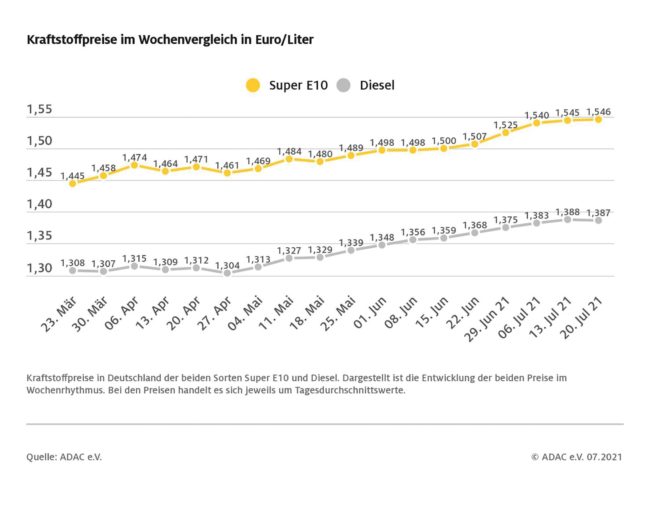 München (ots) – Tanken hat sich im Juli im Vergleich zum Vormonat erneut kräftig verteuert. Vor allem für Benzin müssen die Autofahrer jetzt deutlich mehr bezahlen als noch vor einigen Wochen. Wie die aktuelle ADAC Auswertung der Kraftstoffpreise in Deutschland zeigt, kostete ein Liter Super E10 im Juli im Schnitt 1,547 Euro – das sind vier…