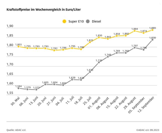 München (ots) Der Anstieg der Kraftstoffpreise geht auch in dieser Woche weiter. Vor allem Diesel verteuerte sich gegenüber der Vorwoche erneut in stärkerem Maße als Benzin. Dies zeigt die aktuelle ADAC Auswertung. Danach kostet ein Liter des Selbstzünderkraftstoffs im bundesweiten Mittel 1,856 Euro (plus 1,8 Cent). Der Preis für einen Liter Super E10 liegt aktuell im…